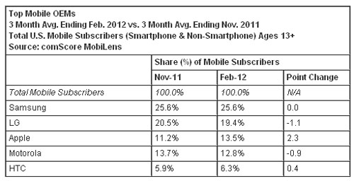 4月7日消息,據國外媒體報道,互聯網統計公司comScore 發(fā)布來自其旗下MobiLens服務的數據,報告了截至今年2月份的三個月里美國手機行業(yè)的主要變化趨勢。數據顯示三星仍為美國最大的手機制造商,占有25.6%的市場份額;谷歌Android在美國智能手機市場的份額持續(xù)增長,在今年2月份跨過50%的大關,在其歷史上首次占有美國市場大部分份額。