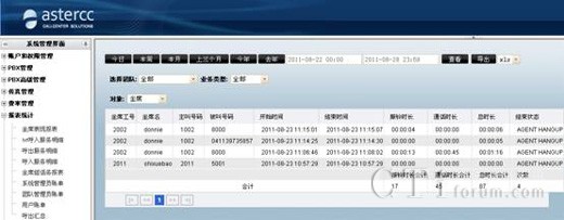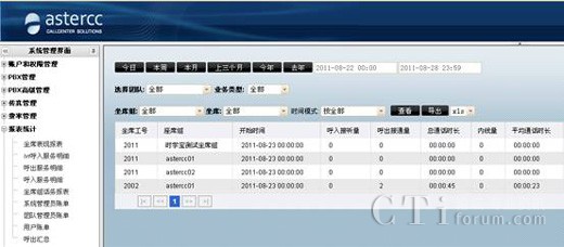 asterCC自動生成的各種數(shù)據(jù)報(bào)表,讓您能很快的從成千上萬的通話中分析到關(guān)鍵的信息。這樣銷售業(yè)績及客服質(zhì)量的情況便清晰可見。根據(jù)豐富的數(shù)據(jù)報(bào)表,給決策者做戰(zhàn)略性市場定位提供有力的數(shù)據(jù)參考,對業(yè)務(wù)的開展也起到了促進(jìn)作用,同時也便于進(jìn)行員工的績效考核。