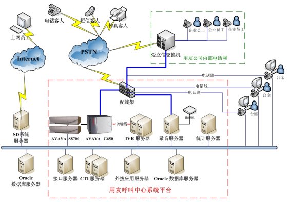 HollyContact(CTI中間件)等,搭建了一個為用友用戶進行軟件應用技術(shù)咨詢、軟件產(chǎn)品咨詢、軟件購買咨詢、故障受理、服務投訴、滿意度調(diào)查、客戶關(guān)懷等內(nèi)容的支撐系統(tǒng)。