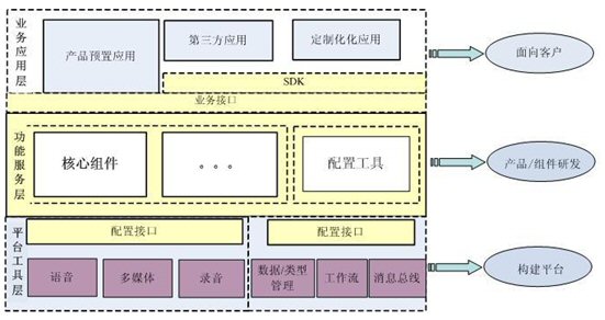 功能服務(wù)層是軟件研發(fā)的重點(diǎn),它在基礎(chǔ)技術(shù)平臺之上形成一個個核心組件,構(gòu)成應(yīng)用軟件產(chǎn)品的核心內(nèi)容,相對于直接面向客戶的應(yīng)用層來講,為二級層面,也可以理解為內(nèi)部組件,提供服務(wù)管理、配置管理,并提供全面的呼叫中心系統(tǒng)功能,完成“以客戶為中心”的服務(wù)請求->基本業(yè)務(wù)->客戶資料管理->主動服務(wù)的閉環(huán)全過程,這個層面體現(xiàn)了軟件開發(fā)商的專業(yè)性。