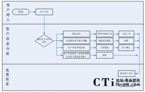 客戶呼入之后,座席人員要做的第一件事情就在IT系統(tǒng)的支持下先去捕獲客戶訴求,不用擔(dān)心座席會(huì)混淆相似的業(yè)務(wù)類型,因?yàn)楹艚兄行尼槍?duì)典型的業(yè)務(wù)訴求會(huì)做出非常詳盡的引導(dǎo)流程,相似的或者關(guān)聯(lián)的業(yè)務(wù)類型在此流程中會(huì)體現(xiàn)出來,座席人員可以點(diǎn)擊,快捷地出入于各業(yè)務(wù)類型的引導(dǎo)圖,通過比較、判斷,最終定位出客戶真正訴求。例如下文客戶呼入本來想做“撤機(jī)”業(yè)務(wù),通過業(yè)務(wù)引導(dǎo)圖,最終定位到了客戶的真正訴求,辦理了停機(jī)保號(hào)業(yè)務(wù)或者移機(jī)業(yè)務(wù)。