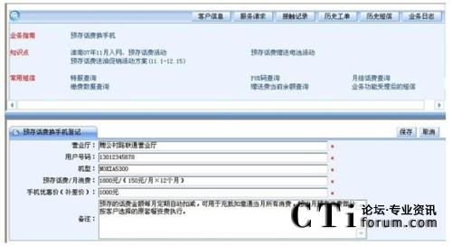要實(shí)現(xiàn)此目的,IT支撐系統(tǒng)將高技能座席的處理能力“推送”給普通座席。第一章我們論述了IT支撐系統(tǒng)可以以客戶應(yīng)用場(chǎng)景為核心,通過分析流程分析客戶訴求找到客戶真正的需求。可以將這一思路推演下去,針對(duì)客戶的某個(gè)具體需求,呼叫中心制定統(tǒng)一的解決方案。我們以下面的“預(yù)存話費(fèi)換手機(jī)”為案例。通過先期溝通,座席已經(jīng)知曉這是客戶的真正訴求,只需要選擇好“預(yù)存話費(fèi)換手機(jī)”的業(yè)務(wù)類型,IT支撐系統(tǒng)會(huì)顯示出集成在一個(gè)頁面中的全套解決方案:處理此訴求可能用到知識(shí)庫中的三個(gè)知識(shí)點(diǎn);需要查詢的客戶信息,經(jīng)常給客戶發(fā)送的短信內(nèi)容;處理此訴求可能執(zhí)行的登記任務(wù),……
