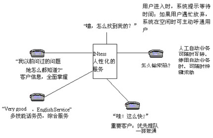 基于CTI(電信和計算機(jī)集成)技術(shù)和call center(呼叫中心)技術(shù)的INtess客戶服務(wù)平臺,積累網(wǎng)上600多套設(shè)備業(yè)務(wù)開發(fā)和運(yùn)行實踐的經(jīng)驗,運(yùn)用專業(yè)化的設(shè)計,全面解決電信客戶服務(wù)中的難題: