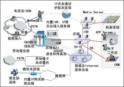 E號(hào)通第一期32座席,集中為全國用戶提供服務(wù),以內(nèi)置在排隊(duì)機(jī)的IP網(wǎng)關(guān)為中心搭建的IP語音網(wǎng)解決異地接入問題,節(jié)省了帶寬,降低了運(yùn)營費(fèi)用。WECC(Web集成呼叫中心)為網(wǎng)上交易用戶提供多種交互方式:IP點(diǎn)擊通話、文字交談、護(hù)航瀏覽等,解決了在線服務(wù)問題;強(qiáng)大的呼出功能模塊,提供了定制和主動(dòng)式服務(wù);同時(shí),內(nèi)置在排隊(duì)機(jī)內(nèi)部的IVR,語音質(zhì)量完美,響應(yīng)速度快。該方案大規(guī)模的集中接入整合了資源,方便了管理,可平滑擴(kuò)展至3萬中繼以上。E號(hào)通是國通證券系統(tǒng)內(nèi)外資源的一次大規(guī)模、高層次的有效整合。首先它整合了營業(yè)部分散的資源,將多種媒體的接入集中到中心,在股民享受更高層次和便捷的服務(wù)同時(shí),券商自身也降低了運(yùn)營及管理成本。其次國通通過E號(hào)通整合了國通在市場研究、行業(yè)研究 、經(jīng)紀(jì)業(yè)務(wù)、投行業(yè)務(wù)、電子商務(wù)等領(lǐng)域的優(yōu)勢(shì)資源,以及與銀行合作帶來的外部資源,形成了具有國通特色的、集證券、銀行多種個(gè)性化服務(wù)內(nèi)容于一身金融服務(wù)“超市”。