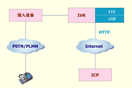 使用VXML語(yǔ)言編寫(xiě)流程腳本或網(wǎng)頁(yè),該腳本或網(wǎng)頁(yè)的內(nèi)容與固網(wǎng)短信終端上的菜單相對(duì)應(yīng),普通用戶(hù)可通過(guò)語(yǔ)音方式瀏覽該菜單。當(dāng)用戶(hù)選擇信息點(diǎn)播后,VoiceIE系統(tǒng)模擬普通固網(wǎng)短信終端向ICP發(fā)送請(qǐng)求,并接收ICP發(fā)來(lái)的文字信息,然后通過(guò)TTS技術(shù)向用戶(hù)播放文字信息。當(dāng)然,固網(wǎng)短信終端也可通過(guò)菜單瀏覽方式使用這些采用VXML語(yǔ)言編寫(xiě)的業(yè)務(wù),采用VXML語(yǔ)言編寫(xiě)網(wǎng)頁(yè)的工作可由ICP來(lái)完成。