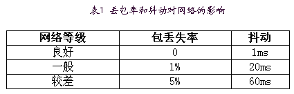 一般根據(jù)丟包率和抖動(dòng)將網(wǎng)絡(luò)分為三級,見表1。