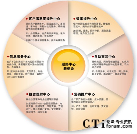對(duì)于銀行業(yè)來(lái)說(shuō),聯(lián)絡(luò)中心已經(jīng)成為為客戶提供優(yōu)質(zhì)、快捷的金融理財(cái)服務(wù)的第二窗口。隨著電子化建設(shè)的不斷深入,寬帶、Internet和3G時(shí)代帶來(lái)的IP融合,聯(lián)絡(luò)中心為金融服務(wù)帶來(lái)了更廣泛的創(chuàng)新,未來(lái)的銀行聯(lián)絡(luò)中心將為客戶提供的金融服務(wù)趨于無(wú)所不能。銀行聯(lián)絡(luò)中心已經(jīng)成為自助交易中心、投資理財(cái)中心、營(yíng)銷推廣中心和信息服務(wù)中心,借助聯(lián)絡(luò)中心,銀行與客戶可以隨時(shí)隨地建立緊密的多媒體互動(dòng),提升客戶滿意度和服務(wù)效率。