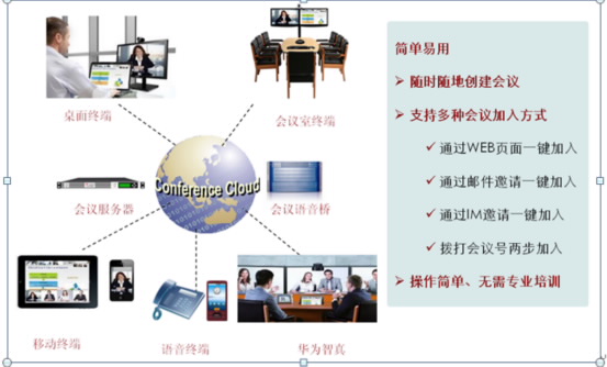 華為提供了經(jīng)過專門設(shè)計和測試的融合解決方案,將智真、硬件、軟件、電話等任何會議形式融合在一起實現(xiàn)在辦公室、會議室、家中、戶外等任何位置,使用臺式機(jī)、筆記本、智能手機(jī)、平板電腦、固定電話等任何設(shè)備將員工、合作伙伴和客戶緊密的聯(lián)系在一起,實現(xiàn)實時的交流協(xié)作。