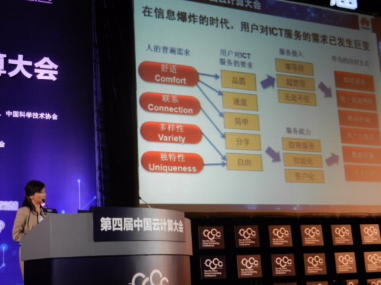 圖片說明:華為IT產(chǎn)品線副總裁朱近之女士在中國云計(jì)算大會(huì)做主題演講