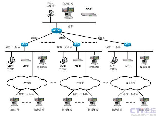 多點控制器:在上海總部采用POLYCOM公司DST MCS4200系列多點控制單元,在下面各分公司根據(jù)各自下屬中支機構數(shù)量的不同分別配置總計17臺MCS4200系列MCU,組成一個分層級聯(lián)的全國性視頻會議網(wǎng)絡。
