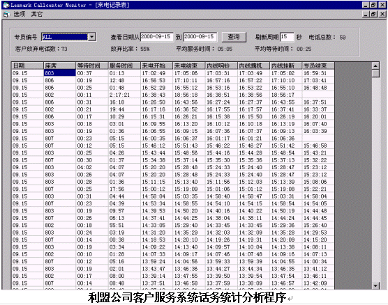 隨著利盟公司客戶服務(wù)系統(tǒng)的開通,使傳統(tǒng)的電話服務(wù)提高到了一個新的階段;一方面借助客戶服務(wù)系統(tǒng)提供的統(tǒng)計分析功能,使客戶服務(wù)中心的績效考核更加準(zhǔn)確、高效和科學(xué);另一方面通過應(yīng)用先進(jìn)的信息技術(shù)和產(chǎn)品,可以極大地提高客戶服務(wù)的質(zhì)量、效率和滿意度,從而對提升公司形象,促進(jìn)產(chǎn)品銷售發(fā)揮積極的作用。