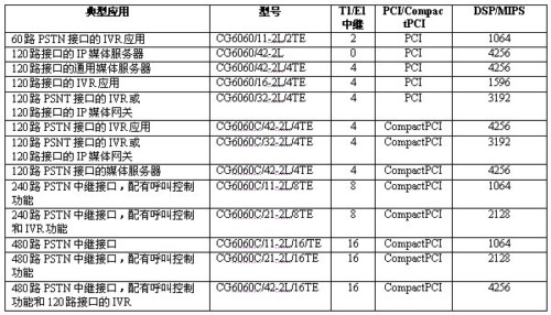 CG 6060系列產(chǎn)品體系設(shè)計(jì)在單塊板卡上集成了PSTN接口、電信協(xié)議、全面的IVR功能、全雙工回音消除、語音編碼、傳真處理、會議應(yīng)用、視頻處理、快速以太接口和數(shù)據(jù)包協(xié)議。這種集成產(chǎn)生了經(jīng)濟(jì)型、可擴(kuò)展的系統(tǒng)平臺,可以滿足OEM供應(yīng)商對120路接口以上新一代匯聚應(yīng)用解決方案的研制需求。