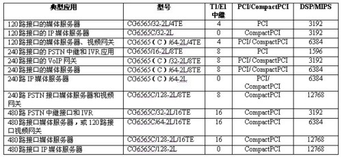 CG 6565系列產(chǎn)品體系設(shè)計(jì)在單塊板卡上集成了PSTN接口、電信協(xié)議、全面的IVR功能、全雙工回音消除、語(yǔ)音編碼、傳真處理、會(huì)議應(yīng)用、視頻處理、快速以太接口和數(shù)據(jù)包協(xié)議。這種集成產(chǎn)生了經(jīng)濟(jì)型、可擴(kuò)展的系統(tǒng)平臺(tái),可以滿(mǎn)足OEM供應(yīng)商對(duì)120路接口以上新一代融合應(yīng)用解決方案的研制需求。