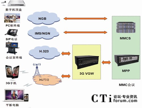 鑒于傳統(tǒng)視頻會(huì)議只能在固定地點(diǎn)、專用線路,通過(guò)專用設(shè)備召開語(yǔ)音和視頻會(huì)議的局限性。3G移動(dòng)視頻會(huì)議解決方案實(shí)現(xiàn)了將會(huì)議拓展到整個(gè)互聯(lián)網(wǎng)和移動(dòng)網(wǎng)絡(luò),用戶隨時(shí)隨地可以使用3G手機(jī)和PC,通過(guò)互聯(lián)網(wǎng)、移動(dòng)網(wǎng)絡(luò)即可便捷地接入到現(xiàn)有會(huì)議系統(tǒng)中,真正實(shí)現(xiàn)跨越地域、空間的全方位會(huì)議。