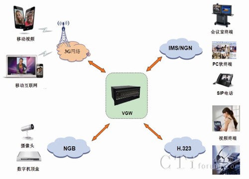 艾諾通信 NetFidelityTM系列視頻網(wǎng)關(guān)VGW應(yīng)用于3G、IMS、NGB等異構(gòu)網(wǎng)絡(luò)之間,提供信令互通和音視頻媒體轉(zhuǎn)換功能,實(shí)現(xiàn)移動(dòng)終端、PC終端以及機(jī)頂盒“三屏”融合應(yīng)用。