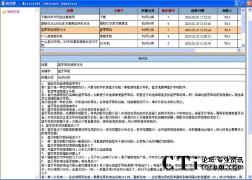 知識庫可以由企業(yè)相關人員自行設定、更新最新的產(chǎn)品知識、市場信息和競爭產(chǎn)品比較等信息。強大的搜索功能也使得查詢更加便利。如當客戶提出某問題使得服務人員無法立即回答時,系統(tǒng)還提供相應的填寫欄目以便及時發(fā)送至主管,請求幫助。而當主管對此問題進行回復后,可以選擇將此問題自動放入知識庫,以便同其他人員分享。系統(tǒng)可以根據(jù)問題的點擊率將最感興趣的問題排列在最前,并可以匯總出一定時間內最感興趣的問題及產(chǎn)品,作為企業(yè)對服務人員今后培訓的重點。同時,系統(tǒng)將自動記錄每一位客戶的咨詢記錄,及時更新并在客戶再次致電時,顯示在客戶資料當中。