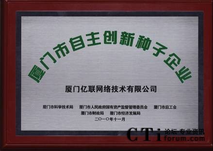 根據(jù)國(guó)家科技部、國(guó)務(wù)院國(guó)資委和全國(guó)總工會(huì)三部委制定的“創(chuàng)新型企業(yè)試點(diǎn)工作實(shí)施方案”和廈門(mén)市“技術(shù)創(chuàng)新引導(dǎo)工程實(shí)施方案”具體要求,市科技局、市國(guó)資委、市總工會(huì)、市財(cái)政局、市經(jīng)發(fā)局聯(lián)合開(kāi)展了2010年廈門(mén)市自主創(chuàng)新示范、試點(diǎn)、種子企業(yè)評(píng)選工作。經(jīng)專家評(píng)審和市五部門(mén)聯(lián)合審核后,廈門(mén)億聯(lián)網(wǎng)絡(luò)技術(shù)有限公司(以下簡(jiǎn)稱億聯(lián))憑借科技、環(huán)保的產(chǎn)品和強(qiáng)大的研發(fā)實(shí)力獲得了廈門(mén)市自主創(chuàng)新種子企業(yè)獎(jiǎng)。