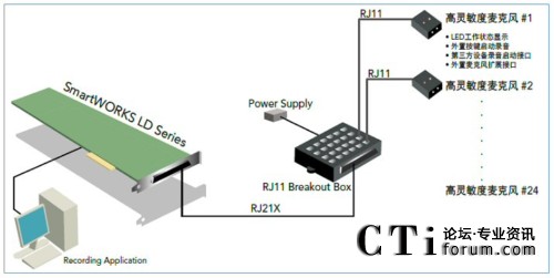 MIC BOX還可以通過連接在Breakout Box的多個麥克風(fēng)輕松實(shí)現(xiàn)多方分離錄音,再利用LD板卡強(qiáng)大的數(shù)字混音功能,可以把多方分離的語音文件完美的合成到一個語音文件中,使MIC