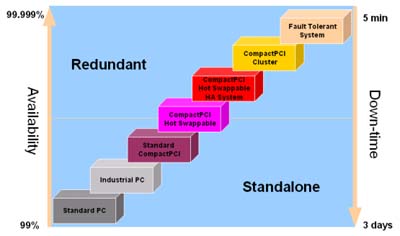 雖然CompactPCI的價格較VME和傳統(tǒng)工業(yè)計算機為高,但就整體考量而言,效價比仍是相當(dāng)優(yōu)異的。就幾乎無法接受系統(tǒng)損壞停機的電信產(chǎn)業(yè)而言,通訊設(shè)備供貨商(TEM)如何規(guī)劃一個價格合理、性能穩(wěn)定的高可用性系統(tǒng)呢?