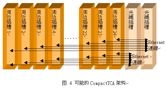 高可靠度CompactPCI 系統(tǒng)的下一步發(fā)展將是去除系統(tǒng)插槽(system slot);因?yàn)閼?yīng)用程序利用現(xiàn)今系統(tǒng)的IP互聯(lián),PCI總線逐漸成為派不上用場的費(fèi)用。PICMG協(xié)會(huì)現(xiàn)正進(jìn)行CompactTCA的規(guī)格制訂,CompactTCA規(guī)格可望結(jié)合AdvancedTCA(PICMG