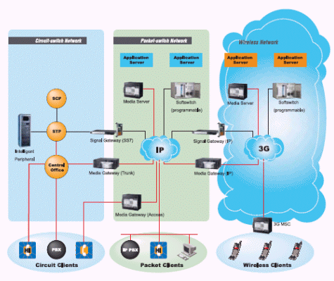 、隨選視訊(Video Streaming) 等應(yīng)用,著重在聲音影像,深具高度收益的潛力,而被服務(wù)供貨商大力推廣。但是服務(wù)提供業(yè)者為了讓使用者能輕易的在現(xiàn)行設(shè)備上溝通聲音影像,必須肩負(fù)極高的成本,同時運營兩種網(wǎng)絡(luò)。因此在不損壞傳統(tǒng)語音網(wǎng)絡(luò)穩(wěn)定運作而又能快速建置整合新一代IP通訊建設(shè)的限制下,『寬頻通訊平臺』便以網(wǎng)關(guān)(Gateway)的形式出現(xiàn)扮演接口角色,成為網(wǎng)絡(luò)設(shè)備供貨商及電信系統(tǒng)業(yè)者最佳的解決方案。不但同時支持IP網(wǎng)絡(luò)又負(fù)起和傳統(tǒng)網(wǎng)絡(luò)以SS7為主的PSTN(Public
