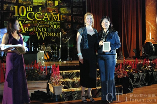 會(huì)議期間,飛翱商務(wù)咨詢(xún)有限公司市場(chǎng)與客戶(hù)服務(wù)部總監(jiān)王淑信代表中國(guó)從亞太客服與呼叫中心聯(lián)盟(APCCAL)高級(jí)官員的手中接過(guò)了象征著2009亞太呼叫中心行業(yè)最高榮譽(yù)的2009亞太最佳呼叫中心的獎(jiǎng)牌。