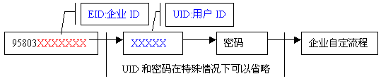 凡是使用服務(wù)的企業(yè)首先必須向IVR服務(wù)提供商申請一個(gè)EID(企業(yè)ID),這個(gè)ID在企業(yè)用戶使用IVR或者登陸UMS的WEB的時(shí)候必須使用. 因?yàn)镮VR和UMS是為多個(gè)企業(yè)服務(wù)的.