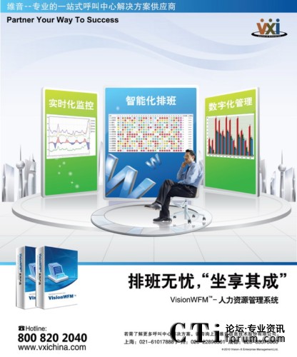 VisionWFM解決方案是為降低客戶服務中心的運營成本、提高客戶服務中心管理效率而設計的。我們可以通過系統(tǒng)軟件,科學地改進運營策略和管理方法,使客戶服務中心在服務質(zhì)量、客戶滿意度和成本控制等績效指標上都取得極大的提高。