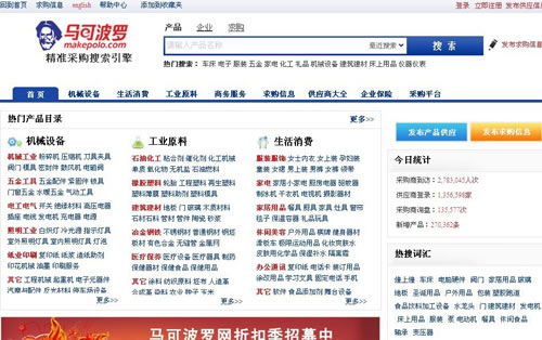 馬可波羅網(wǎng)隸屬北京搜斗士信息技術有限公司,成立于2006年,是全球最大的精確采購搜索引擎。馬可波羅按照格式化標準研發(fā)的多維精準搜索系統(tǒng),首創(chuàng)電子商務精確廣告營銷模式(B2B競價排名),僅用了不到5年時間,即在B2B電子商務精準采購搜索領域做到行業(yè)第一。