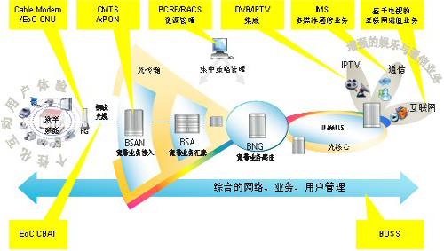 HLN解決方案是針對海量用戶、高帶寬和高并發(fā)流量而設(shè)計(jì),適合用大規(guī)模家庭雙向業(yè)務(wù)的市場。在該架構(gòu)下,通過配備支持同軸電纜接入技術(shù)的網(wǎng)元設(shè)備,提供基于IP的雙向交互、廣播、單播\組播、推送播存的能力,完全滿足廣電各階段業(yè)務(wù)發(fā)展需要的同時(shí),通過精細(xì)化管道、高帶寬、扁平化等優(yōu)勢,實(shí)現(xiàn)網(wǎng)絡(luò)效率和效益的提升。