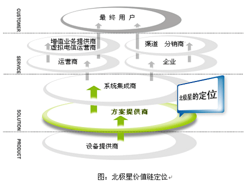 北極星軟件創(chuàng)建于1997年。作為專業(yè)的VoIP增值業(yè)務解決方案供應商,北極星軟件秉承“溝通世界(Connecting the world)”的理念,致力于以新技術推動人和信息的溝通,為電信運營商、虛擬電信運營商、電信增值業(yè)務運營商和廣大中小企業(yè)提供電信級的VoIP增值方案。