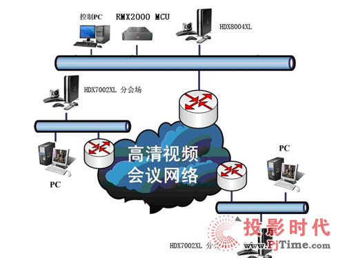 - 采用2Mbps專線方式組網(wǎng),實(shí)現(xiàn)全高清視頻會(huì)議