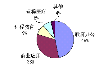 視頻會(huì)議系統(tǒng)在我國(guó)開始發(fā)展的初期,政府部門及電信、金融、電力、鐵路等壟斷性行業(yè)的應(yīng)用占據(jù)了絕大部分的市場(chǎng)份額。近年來(lái)隨著電子政務(wù)工程的逐步推進(jìn),政府部門更加關(guān)注視頻會(huì)議系統(tǒng)建設(shè)。在經(jīng)濟(jì)發(fā)達(dá)地區(qū)(例如浙江、山東、廣東),視頻會(huì)議網(wǎng)已覆蓋到地市級(jí)城市,有的甚至覆蓋到縣一級(jí)。除各級(jí)政府之外,其它諸如檢察院、法院、公安和水利等職能部門也是視頻會(huì)議系統(tǒng)的重要用戶。賽迪網(wǎng)曾對(duì)視頻會(huì)議系統(tǒng)的應(yīng)用現(xiàn)狀做過(guò)調(diào)查,發(fā)現(xiàn)政府辦公占全部市場(chǎng)份額的46.6%,電信、金融、鐵路、電力等行業(yè)占據(jù)了33.2%的市場(chǎng)份額,而遠(yuǎn)程教育和遠(yuǎn)程醫(yī)療由于尚處于發(fā)展初期,所占份額分別是8.7%和7.9%。