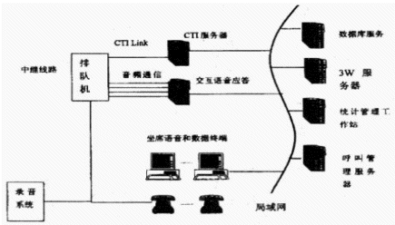 基于交換機(jī)的方式(ACD方案):這種方案的核心思想是,在專(zhuān)用交換機(jī)集成ACD的基礎(chǔ)上擴(kuò)展路由功能,開(kāi)放CTI-Link接口,用CTI技術(shù)實(shí)現(xiàn)通信和計(jì)算機(jī)的功能結(jié)合,再配以必要的語(yǔ)音和數(shù)據(jù)庫(kù)系統(tǒng),從而以強(qiáng)大的通信和計(jì)算機(jī)功能滿(mǎn)足呼叫中心的要求。呼叫處理由交換機(jī)完成,客戶(hù)的自動(dòng)語(yǔ)音服務(wù)由自動(dòng)語(yǔ)音應(yīng)答系統(tǒng)完成。CTI服務(wù)器,作為系統(tǒng)核心部件,通過(guò)交換機(jī)CTI-Link獲取交換機(jī)的狀態(tài)并實(shí)現(xiàn)與交換機(jī)的通信。