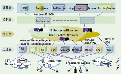 Softswitch體系結(jié)構(gòu)將下一代網(wǎng)絡(luò)共劃分為四層:邊緣接入層、核心傳送層、控制層和業(yè)務(wù)應(yīng)用層,各層之間采用明確的標(biāo)準(zhǔn)化接口(而不是各廠家自己所設(shè)計(jì)的專(zhuān)用接口)。Softswitch提供綜合接入能力,支持種類(lèi)眾多的終端設(shè)備,可以完成與現(xiàn)有PSTN/ISDN、PLMN、IN和Internet網(wǎng)的互通,使用戶(hù)完全屏蔽網(wǎng)絡(luò)的變革。