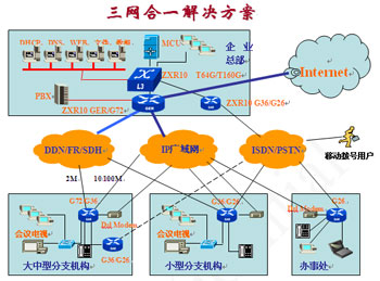 中興通訊具有豐富的數(shù)據(jù)、視訊、語音網(wǎng)關(guān)等設(shè)備,能提供端到端的語音、數(shù)據(jù)、視訊三網(wǎng)合一解決方案。企業(yè)內(nèi)部電話/視訊長途走自己的數(shù)據(jù)網(wǎng),節(jié)約費(fèi)用;組成語音VPN/視訊 VPN,多種手段保證Qos。