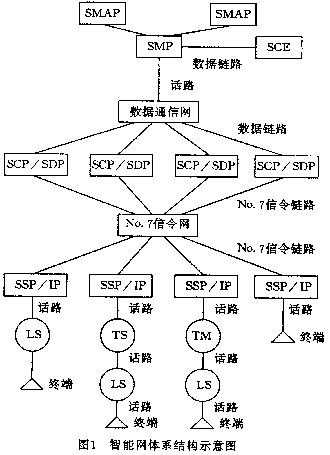 --智能網(wǎng)是通過業(yè)務交換點(SSP)、業(yè)務控制點(SCP)、數(shù)據(jù)庫(SDP)、智能外設(IP)以及業(yè)務管理點(SMP)、業(yè)務生成環(huán)境(SCE)等來生成和實現(xiàn)新業(yè)務的。它可以為所有的通信網(wǎng)絡服務,無論是PSTN、PSPDN、PLMN、N-ISDN。圖1所示是PSTN、PLMN、N-ISDN還是B-ISDN。圖1所示為我國目前智能網(wǎng)的結構,其中的SMAP是業(yè)務管理接入點。LS是市話交換,TS是長途交換級,TM為匯接局。