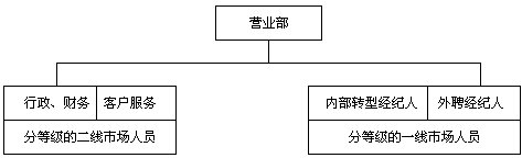 此五種模式建立在營(yíng)業(yè)部基礎(chǔ)上,在券商總部,建議設(shè)立垂直的業(yè)務(wù)管理機(jī)構(gòu),即經(jīng)紀(jì)業(yè)務(wù)總部實(shí)行事業(yè)部制,下設(shè)分工專業(yè)的市場(chǎng)營(yíng)銷部、客戶服務(wù)部、經(jīng)紀(jì)人訓(xùn)練部和綜合管理部等。