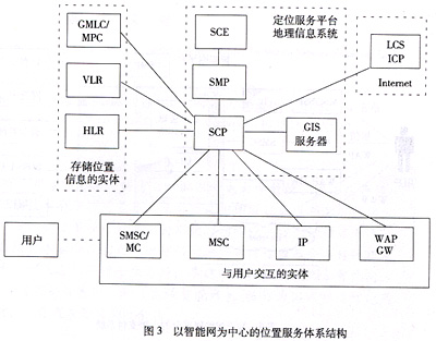在GSM網(wǎng)絡(luò)和CDMA網(wǎng)絡(luò)中均有LCS的規(guī)范。在GSM的LCS網(wǎng)絡(luò)參考模型中,智能網(wǎng)的業(yè)務(wù)控制點(SCP)通過與關(guān)口移動位置中心(GMLC)之間具有標準的Lc接口,可以獲得移動終端的位置信息,而在CDMA網(wǎng)絡(luò)中,SCP與移動位置中心(MPC)之間也具有標準的L4接口,可以實現(xiàn)類似功能。