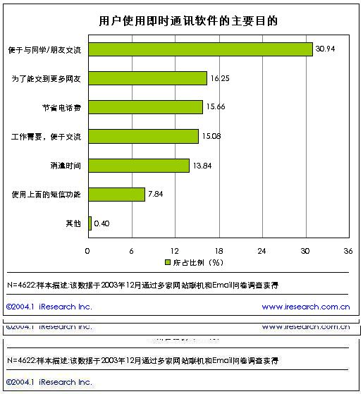 過去的2003年無疑是中國的互聯(lián)網(wǎng)的火熱一年,在眾多的互聯(lián)網(wǎng)應(yīng)用中,最引人注目的莫過于即時通訊市場的風(fēng)起云涌,門戶網(wǎng)站們劍拔弩張,電信運(yùn)營商摩拳擦掌,紛紛宣稱將投入巨資用于這些產(chǎn)品的推廣,即時通訊迅速成為人們關(guān)注的焦點(diǎn),這一市場到底有多大的魔力?中國著名的網(wǎng)絡(luò)經(jīng)濟(jì)研究機(jī)構(gòu)上海艾瑞市場咨詢(iResearch)有限公司剛剛完成的《2003年中國即時通訊研究報告》對中國的即時通訊市場做了非常全面的闡述。