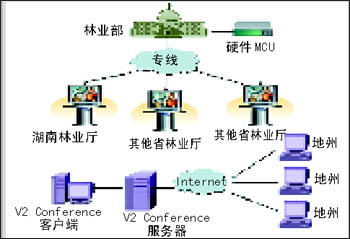 湖南省林業(yè)廳是省政府行業(yè)電子政務(wù)系統(tǒng)的示范單位,非常重視計(jì)算機(jī)網(wǎng)絡(luò)平臺上的各種軟件應(yīng)用。為了減少會議支出,提高辦公效率,湖南省林業(yè)廳經(jīng)過廳務(wù)會研究決定,希望充分利用全省十四個(gè)地州市現(xiàn)有的計(jì)算機(jī)和音響設(shè)備建立全廳的網(wǎng)絡(luò)視頻會議系統(tǒng)。在經(jīng)過公開競標(biāo)后,V2產(chǎn)品憑借著其優(yōu)越的性能價(jià)格比和售后服務(wù)保證,成功中標(biāo)。