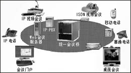 實現(xiàn)調(diào)度、呼叫處理、網(wǎng)絡(luò)會議的軟件(通過門戶網(wǎng)站,Microsoft Outlook,Web瀏覽器等);管理和目錄服務(wù)軟件;軟件或硬件終端;多標(biāo)準(zhǔn)支持,如:H.323、H.320、SIP、ISDN、IP;媒體處理硬件(會議橋和網(wǎng)關(guān))。