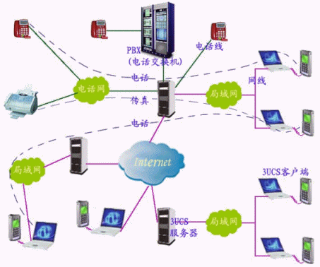 3UCS秉承便捷溝通、高效辦公之理念,將企業(yè)語音通訊、數(shù)字通訊整合在同一通訊線上,將電話交換機(jī)功能延伸至IP網(wǎng)絡(luò),電話與傳真線路共享,有效利用線路資源,無縫連接三個(gè)網(wǎng)絡(luò)(電話網(wǎng)、局域網(wǎng)、因特網(wǎng)),將電話交換機(jī)、傳真服務(wù)、消息等功能集于一身, 利用現(xiàn)有的局域網(wǎng)、因特網(wǎng)接打電話,收發(fā)傳真。