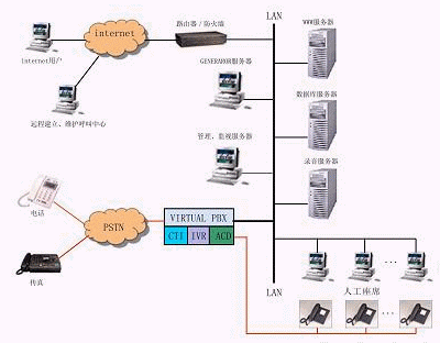 呼叫中心服務(wù)器是系統(tǒng)的主要組成部分,起著橋梁的作用,其用戶通過PSTN與業(yè)務(wù)系統(tǒng)及人工坐席相連,其具體功能如下: