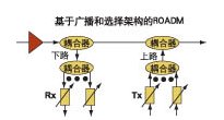 基于廣播和選擇結(jié)構(gòu)的ROADM包括簡單的兩端口耦合器和可調(diào)濾波器(見圖1)。這種設(shè)備允許所有節(jié)點(diǎn)看到所有業(yè)務(wù)流,因此業(yè)務(wù)流可以下路到任意或者所有節(jié)點(diǎn),從而通過軟件可以立即進(jìn)行重新配置。
