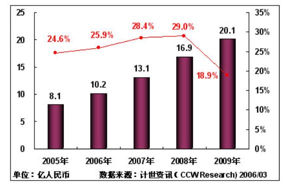 計世資訊(CCW Research)預計:2006年中國城市應急聯(lián)動系統(tǒng)IT投資將保持25.9%的增長率,投資規(guī)模將達到10.2億元;由于"十一五"規(guī)劃的實施,以及數(shù)字奧運進入關(guān)鍵建設(shè)階段,預計在2007年,中國城市應急聯(lián)動系統(tǒng)增長率達到28.4%,2008年增長率達到29.0%;到2009年中國城市應急聯(lián)動系統(tǒng)將進入穩(wěn)定增長階段,IT投入將達到20.1億元。