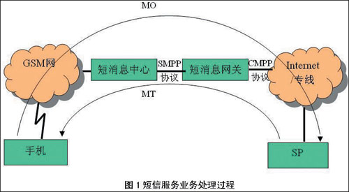 用戶收短信業(yè)務(wù)(即MT業(yè)務(wù),如短信群發(fā)等):提供此項(xiàng)業(yè)務(wù)的SP將短信內(nèi)容以CMPP協(xié)議發(fā)給連接的短信網(wǎng)關(guān),由短信網(wǎng)關(guān)根據(jù)用戶手機(jī)號(hào)段以SMPP協(xié)議發(fā)給用戶所屬的短信中心;