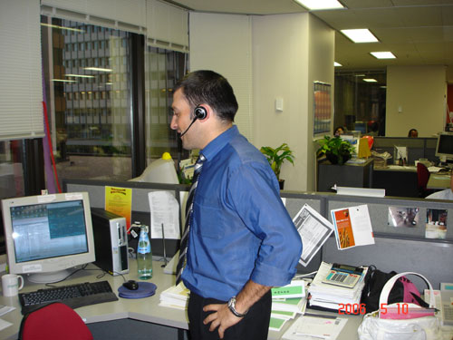 Colonial公司是一家大型的銀行業(yè)務(wù)呼叫中心,座落在悉尼市區(qū)最熱鬧的喬治大街附近,相當(dāng)于我們的上;春B。這里的幾百個(gè)座席分布在寫字樓的好幾個(gè)樓面,所有座席都是使用大北歐的無線耳嘜-GN9120。筆者記得上月去東京參觀HONDA的呼叫中心,那里只有不到三十個(gè)一線的座席代表使用無線耳嘜,這里則是所有人都配備了這種先進(jìn)的無線設(shè)備。筆者看到不少員工站著工作,還有少數(shù)走動(dòng)辦公,員工在座位上可以輕松轉(zhuǎn)身,隨時(shí)調(diào)整姿勢(shì),讓身體處于松弛狀態(tài),這種輕松自如想必電話線那頭的客戶也感同身受。呼叫中心的經(jīng)理Venessa告訴筆者,這里的服務(wù)內(nèi)容比較豐富,對(duì)員工的業(yè)務(wù)能力要求很高,所以他們?yōu)閱T工提供一流的工作環(huán)境以減少人員流失率,降低招聘和培訓(xùn)成本,提高客戶滿意度。