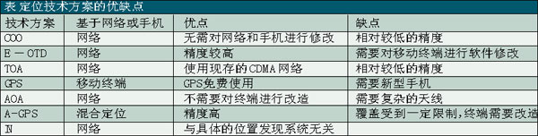 基于移動(dòng)終端的定位技術(shù)包括全球定位系統(tǒng)——GPS、基于移動(dòng)終端信號(hào)發(fā)送和接收的時(shí)戳或角度的技術(shù)——E-OTD(增強(qiáng)觀測時(shí)間差分)/TOA(到達(dá)時(shí)間),以及來源蜂窩小區(qū)——COO技術(shù)(還有所謂的輔助GPS—A-GPS技術(shù)作為對(duì)COO技術(shù)的補(bǔ)充)。