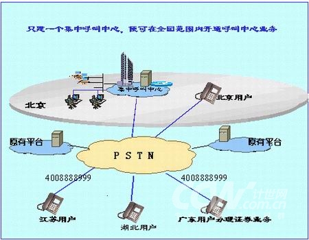 例如,大鵬證券原在部分省市有呼叫中心平臺,用于當(dāng)?shù)仉娫挼慕尤。為了降低企業(yè)運(yùn)營成本和拓展業(yè)務(wù)覆蓋范圍,大鵬證券計(jì)劃繼續(xù)采用呼叫中心方式為客戶提供服務(wù)。經(jīng)過對電話網(wǎng)、IP網(wǎng)等多種接入方式的比較分析,最終確定采用中國電信"一碼通"業(yè)務(wù)。